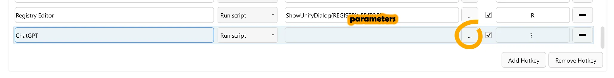 Unify's Hotkey Extender can pass any query / text you type to a Unify script. This allows us to process that input using scripting. In this case we want to create a script that passes the input to ChatGPT.